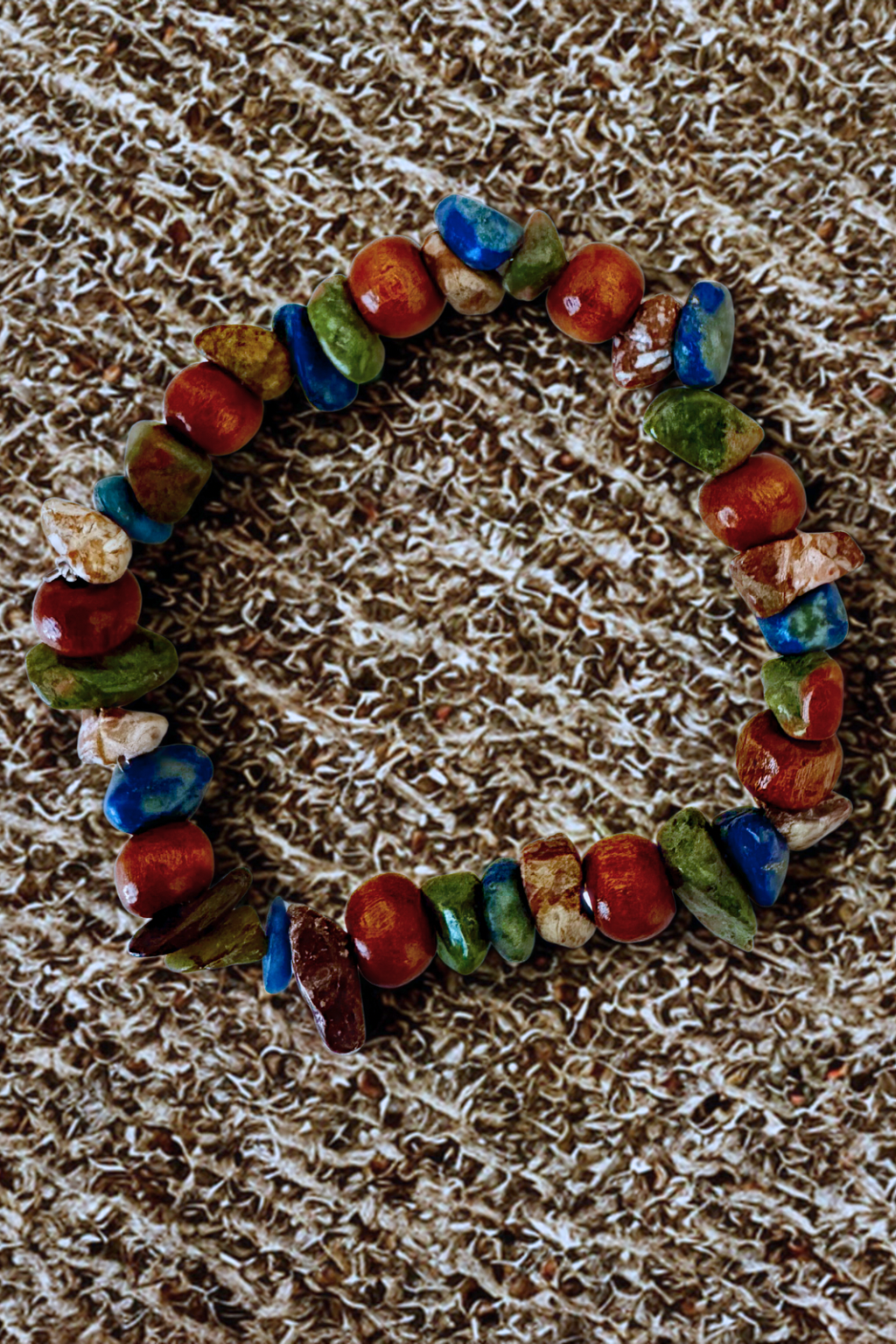 Embrace the spirit of fall with the Autumn Harmony Bracelet. This handcrafted piece features a vibrant mix of earthy red, green, blue, and natural stone beads, each one unique and full of character. The harmonious blend of colors and textures evokes the beauty of autumn leaves and tranquil forest paths. Perfect for adding a touch of nature-inspired elegance to any outfit, this bracelet is a celebration of warmth, balance, and soulful style.