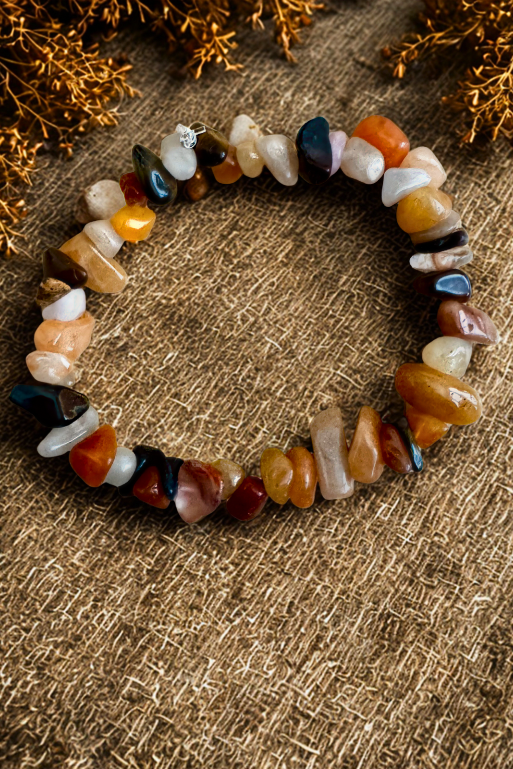 Embrace the warmth of the season with our Harvest Glow bracelet — a stunning blend of earthy amber, caramel, cream, and deep stone hues. Each natural chip bead is carefully strung to capture the cozy, radiant essence of autumn. Perfect for adding a touch of rustic elegance to any outfit, this bracelet embodies grounding energy and timeless charm.