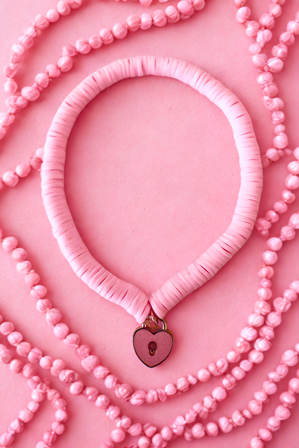 A delicate yet powerful symbol of strength and love. The soft pink heishi beads represent compassion and hope, while the heart lock charm serves as a reminder that courage is the key to unlocking resilience. Perfect for everyday wear or as a meaningful gift, this bracelet carries both style and purpose within your Breast Cancer Awareness Collection.