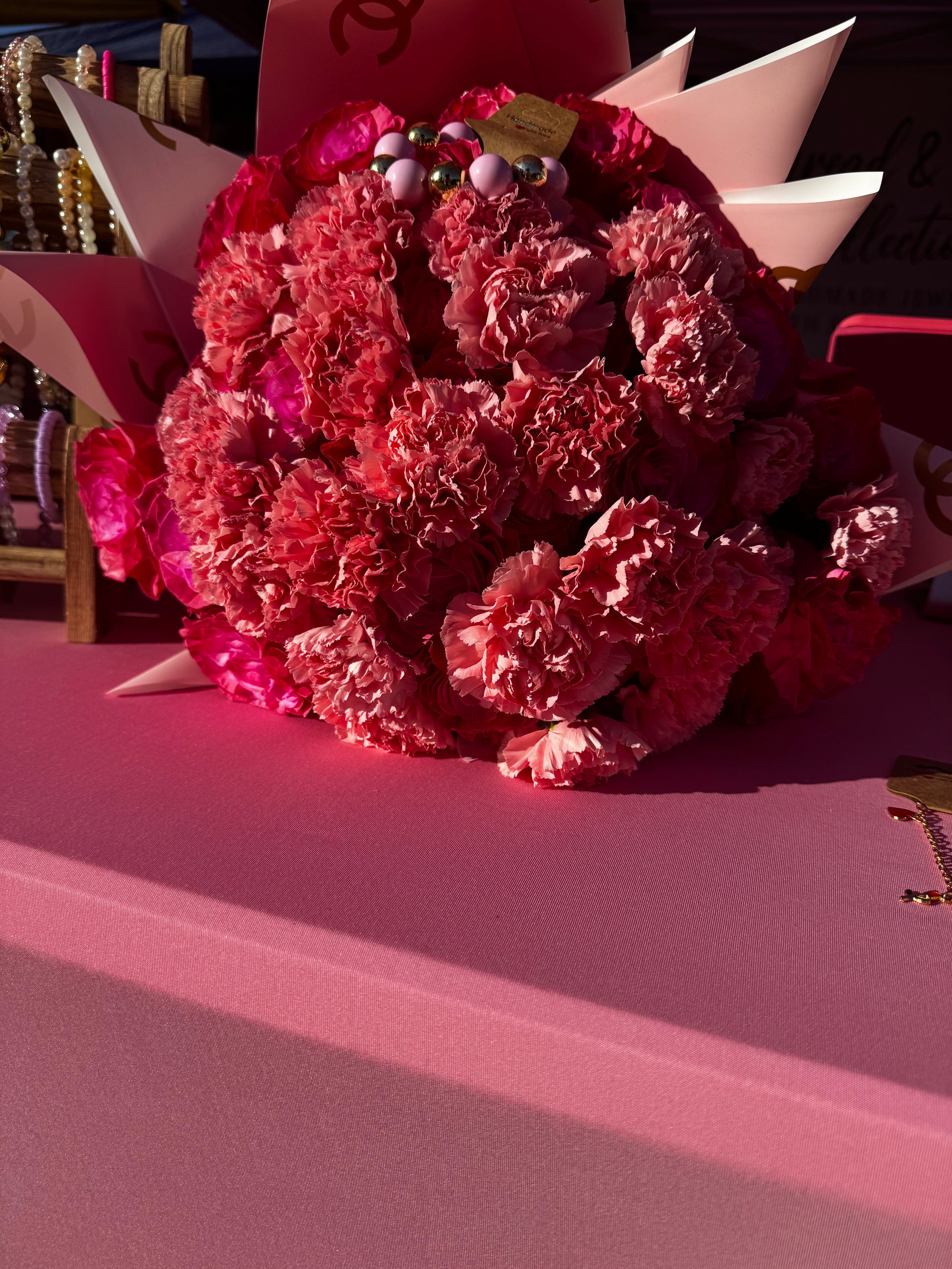 A radiant arrangement bursting with layers of pink carnations wrapped in luxe fuchsia tones of roses for a bold yet feminine statement. The Pretty In Pink bouquet embodies confidence, grace, and self-love — perfect for celebrating milestones, gifting to someone special, or brightening any space with a touch of elegance.