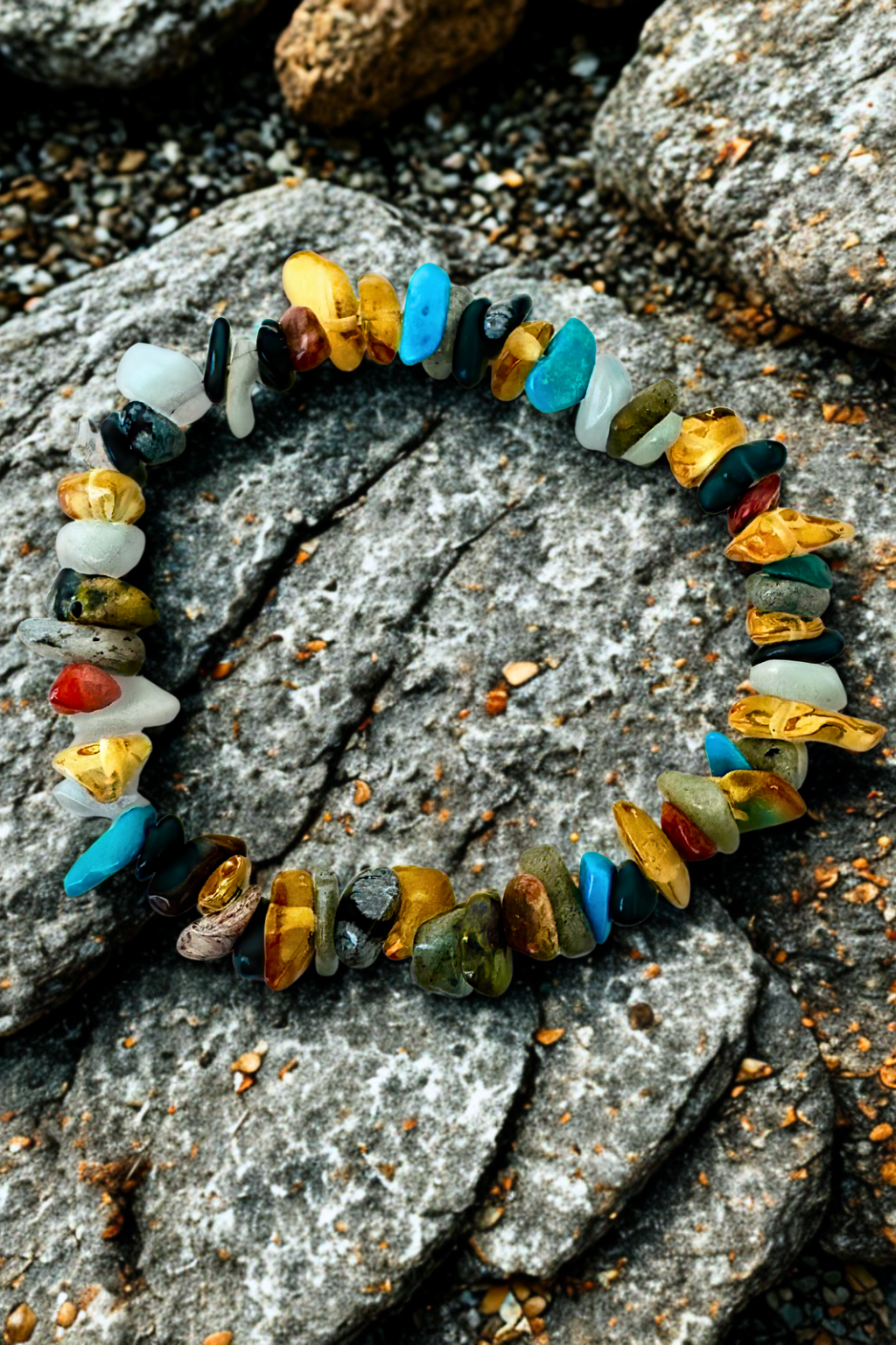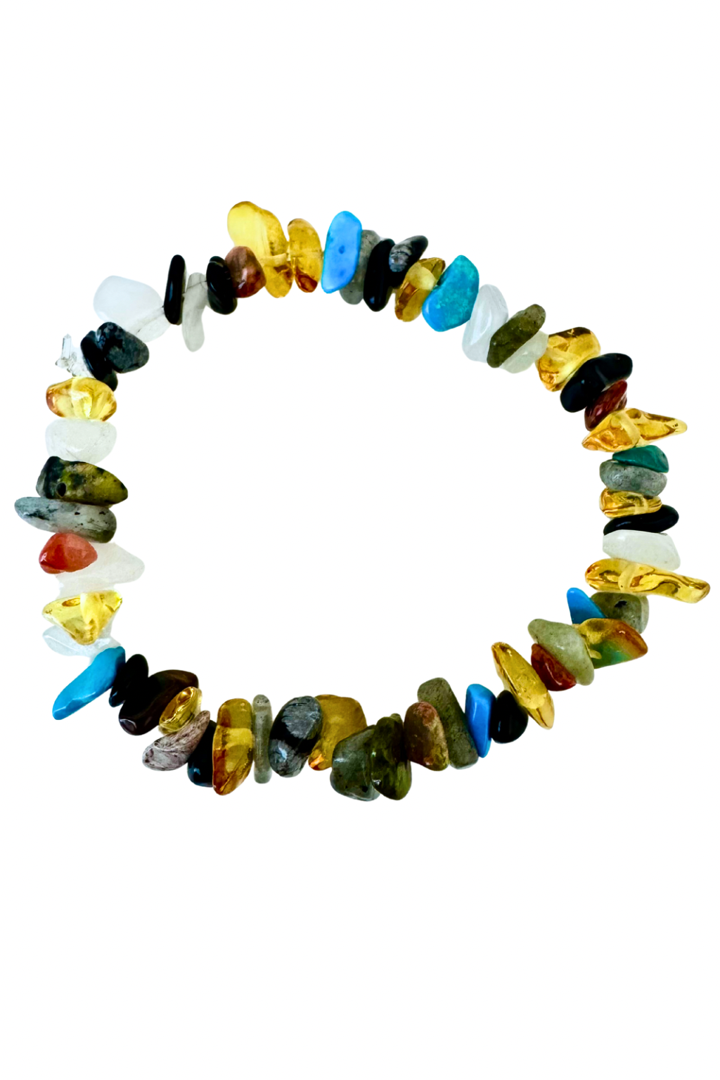 Embrace your adventurous side with the Wild Spirit Bracelet. This unique piece features an eclectic mix of natural gemstone chips in vibrant turquoise, earthy greens, golden yellows, deep blacks, and fiery reds. Each stone is carefully selected to evoke a sense of freedom, wanderlust, and connection to nature. Perfect for stacking or wearing solo, the Wild Spirit Bracelet adds a bold, bohemian touch to any outfit and serves as a reminder to always follow your wild heart.